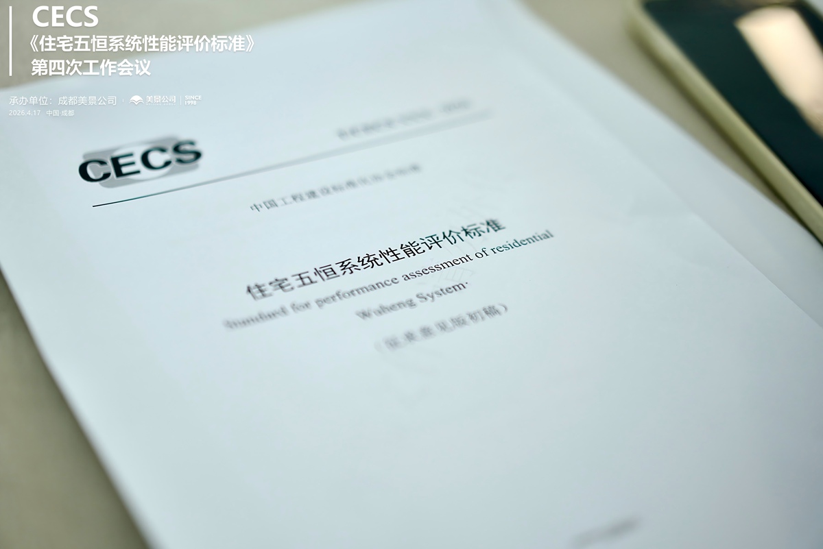 4月17日,由中国工程建设标准化协会指导,成都美景公司承办的CECS《住宅五恒系统性能评价标准》第四次工作会议,在成都美景-沃尔曼科技体验馆圆满举行。